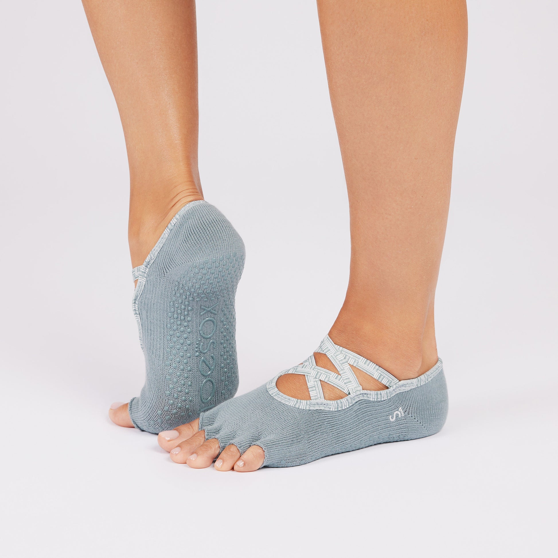 A graceful grip sock where dance-inspired design meets natural toe movement.