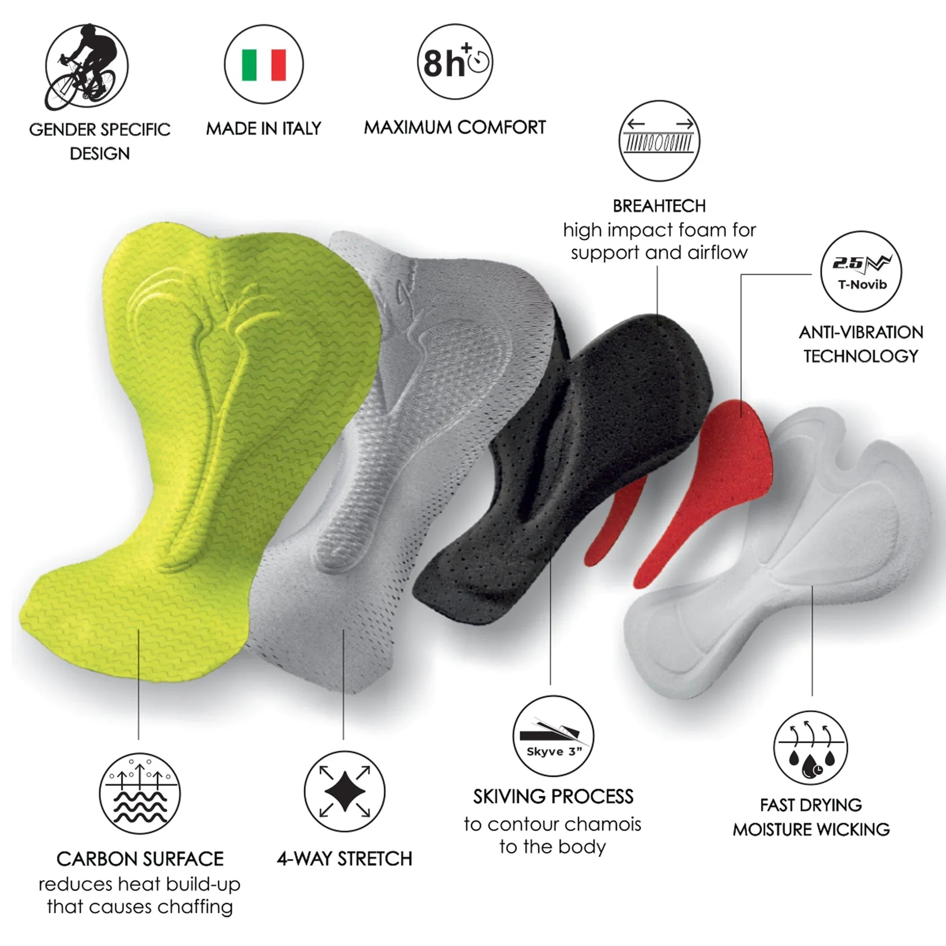 Engineered specifically for triathletes, the PRO CARBON TRI Chamois is designed to provide triathletes with more protection for the long periods time spent in an aerodynamic position. ?The unique multi-support construction eliminates pressure peaks that occur towards the nose of the saddle due to the low aero tri bike position. ?This light-weight slim fitting tri pad is also designed to provide maximum freedom of movement to make the pad ¡°disappear¡± when swimming and running.